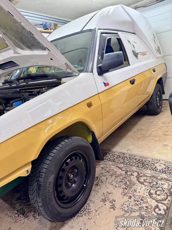 Na celoživotního pracovního slouhu je to až přírodní úkaz, jak překvapivě dobře je zachovalý. Papírový TP a 2x původní klíč, který pasuje jeden pro všechny zámky, přední origo tapece bez děr, záslepka v kastlíku na rádio, ve výbavě i nepoužitá dobová žlutá pláštěnka pro řidiče a další špeky...