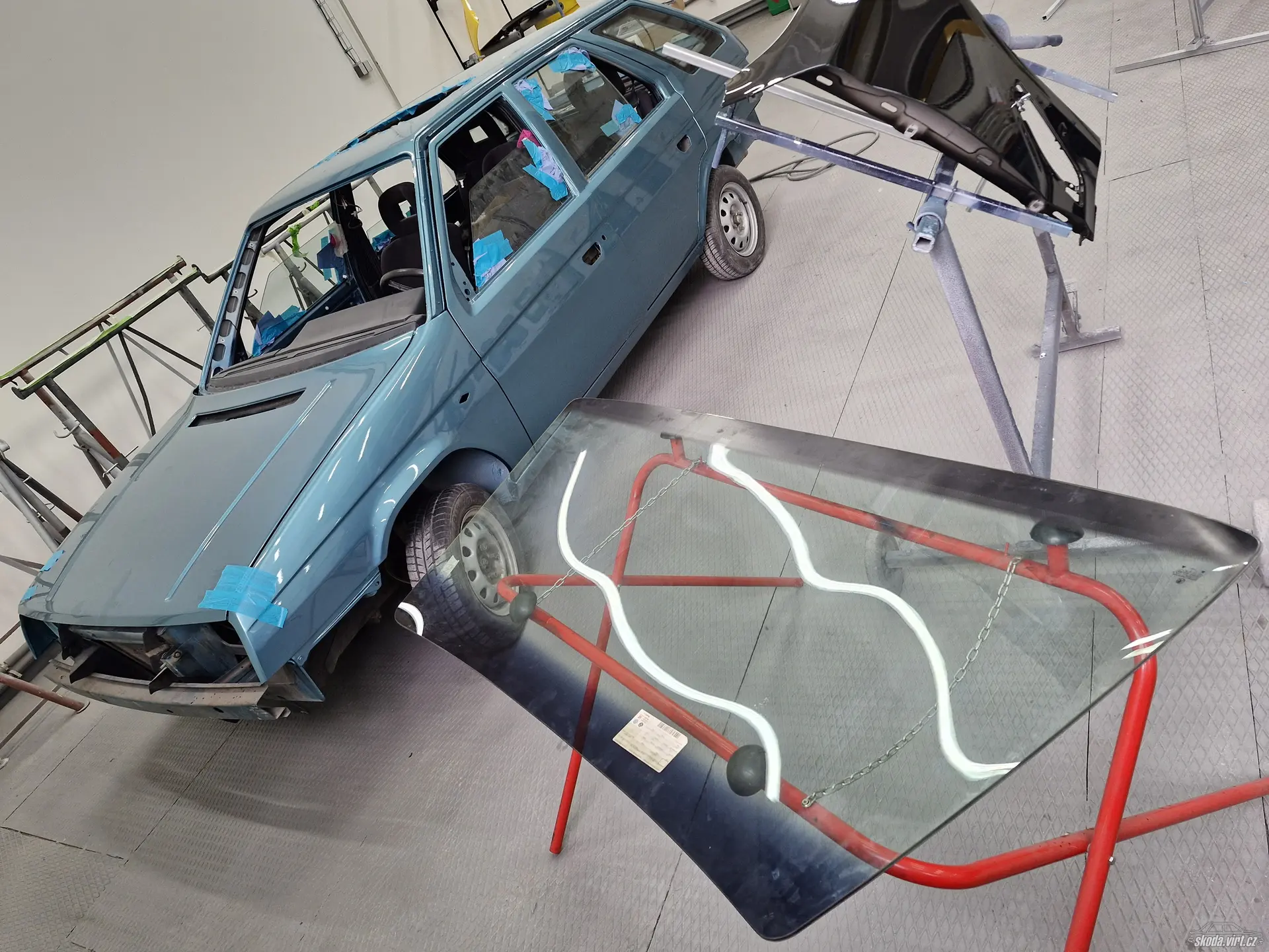 Sehnat nové originální čelní sklo v konfiguraci zeleně tónované, horní pruh a spodní rastr nebylo moc jednoduché, ale podařilo se