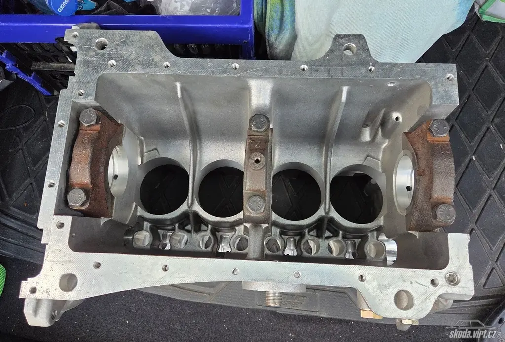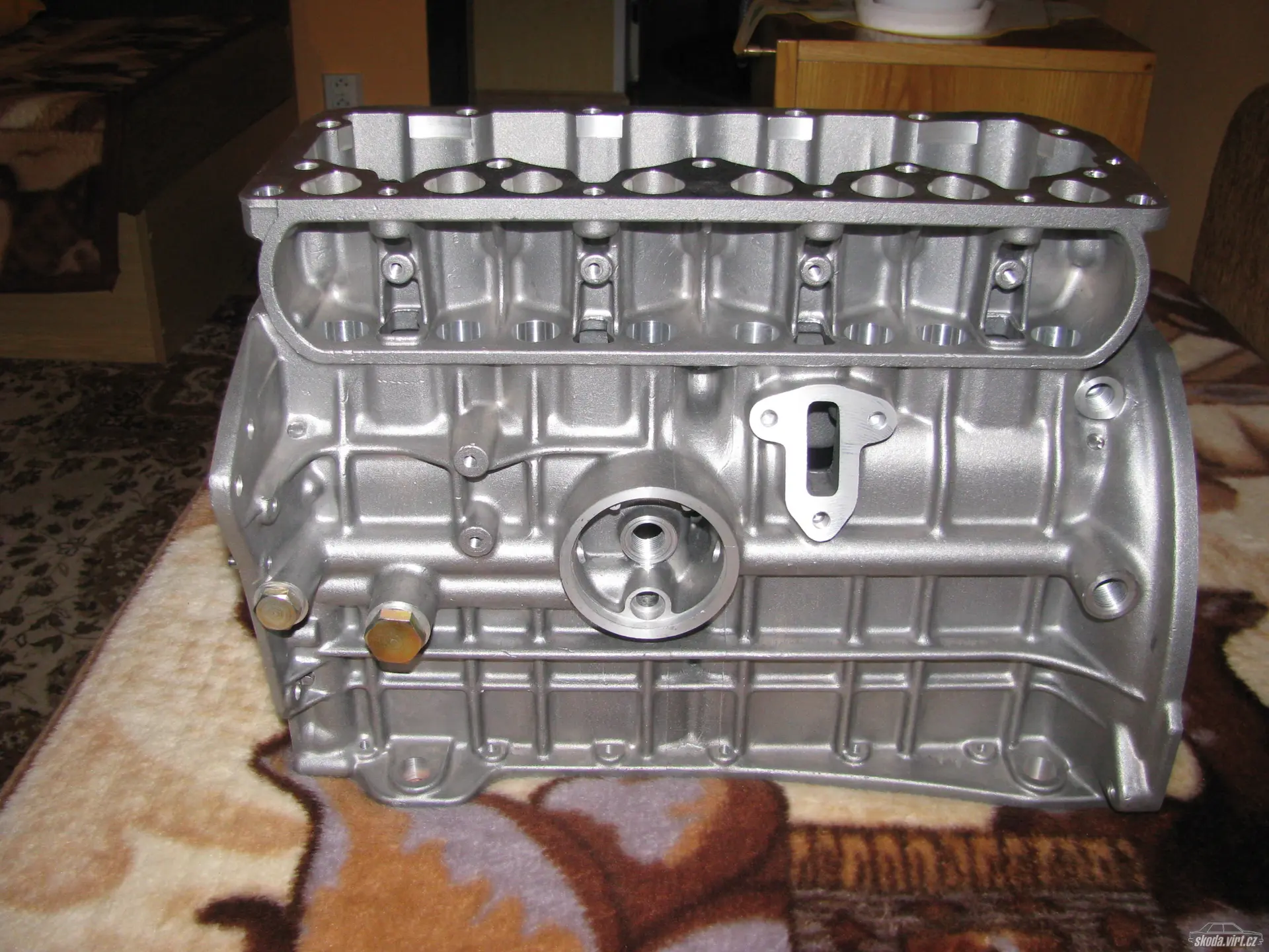 -> Boco: Ano, je to blok Škoda 120 - poslední verze, vyráběná v devadesátých letech jako náhradní díl (od vstupu VW do škodovky byly tlakově lité odlitky před opracováním otryskány, jak tomu bylo zvykem u VW, za dob škodovky byly odlitky opracovány hned po lití - měly hladký povrch.